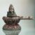 This image depicts Saraswati, the Hindu goddess of knowledge, music, arts, and wisdom. She is seated on a white swan, playing a veena, a stringed instrument. She is adorned with jewelry and draped in white and red.