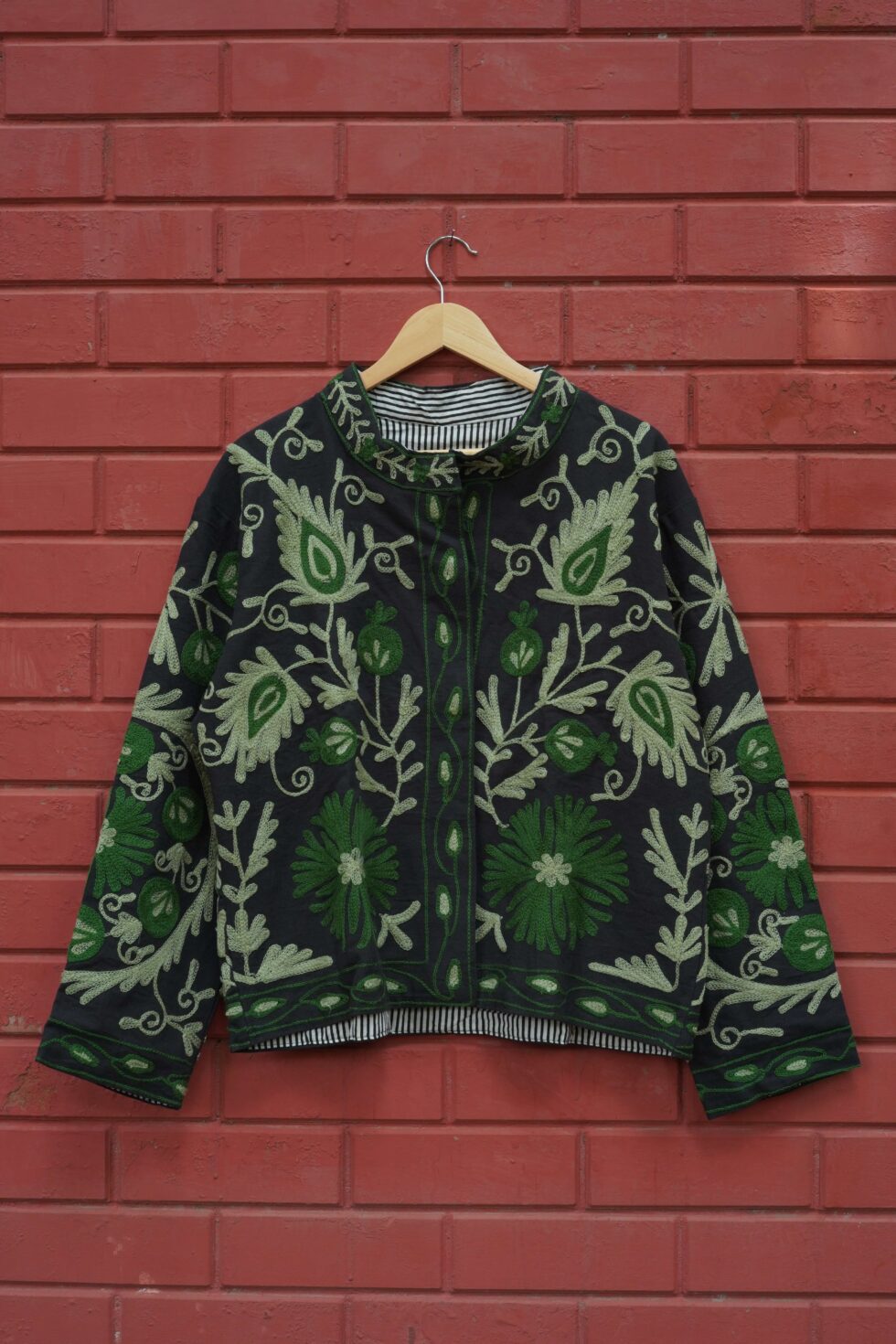 Elevate your festive and ethnic look with this stunning Suzani Embroidered Velvet Jacket. Crafted from premium-quality soft velvet fabric, this jacket offers a luxurious feel and rich texture that enhances every outfit. The intricate Suzani embroidery adds a royal charm and artistic appeal, making it a perfect fusion of traditional craftsmanship and modern style.