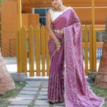 Drape yourself in luxury with this Pure Soft Silk Saree, exquisitely adorned with beautiful thread handwork. It showcases an elegant floral design complemented by a sophisticated cutwork border, creating a harmonious and graceful look. The saree features this elegant design meticulously spread all over, ensuring a stunning appearance. This timeless piece, perfect for any special occasion, is available for ₹4,899.00.